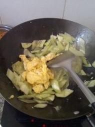 5. 炒蛋:将打好的鸡蛋液倒入锅中,用铲子快速翻炒,使鸡蛋均匀裹在瓜块上。